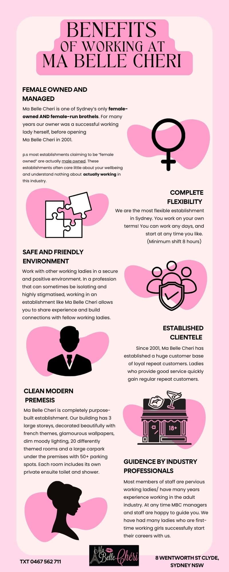 Working in a brothel can be a financially rewarding job, especially once you find the right place to work. As an experienced Service Provider, you need to ask yourself if you’re making as much money as you could be making by working at Ma Belle Cheri.